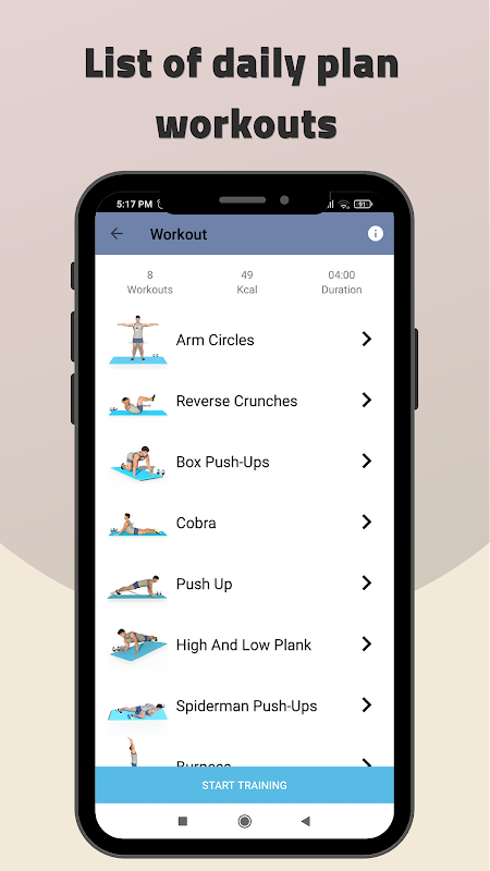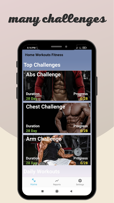 The application includes exercises for the muscles of the abdomen, chest, legs and arms, as well as exercises for the whole body. All exercises are designed by experts. All exercises require no equipment, so you don't have to go to the gym. Although it only takes a few minutes a day, it can shape your muscles and help you get abs at home.