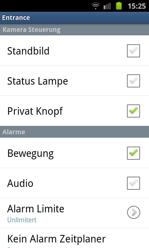 Whenever you launch the application on your iPhone you can see the live image sent to you by the installed camera. You can direct the camera in any direction simply by sliding your finger on the iPhone screen. You can also define alarm settings for each camera: if anything moves in front of the camera, a text message alerting you of this change will be sent to the number of your choice.