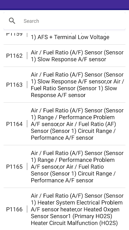非常にユーザーフレンドリー!車両モデルを選択する必要さえありません。トラブルコードを入力するだけで、サポートされているすべての説明がアプリに表示されます。インターネット接続は必要ありません。単一のコードの説明を見つけるためにチェック エンジン ライトを何時間も見る必要はありません。 Honda Diagnostic Trouble Code (DTC) 障害コードの検索プロセスは、かつてないほど簡単になりました。