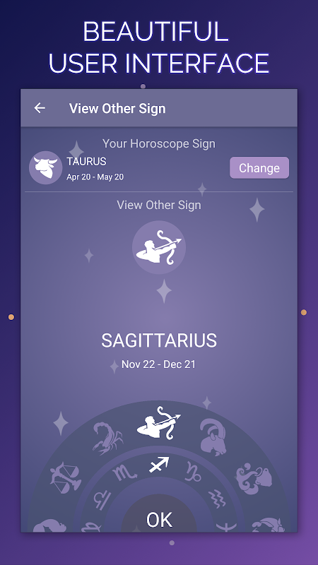 1.今日および明日の星占い、および美しいグラフィカルインターフェイスで他の星座からの星占いを読む