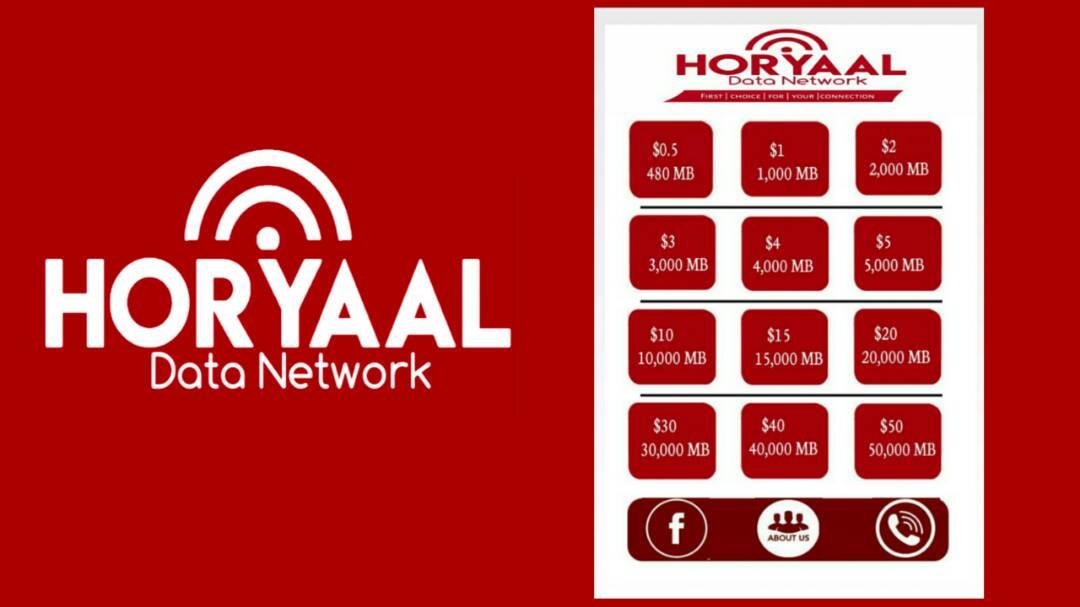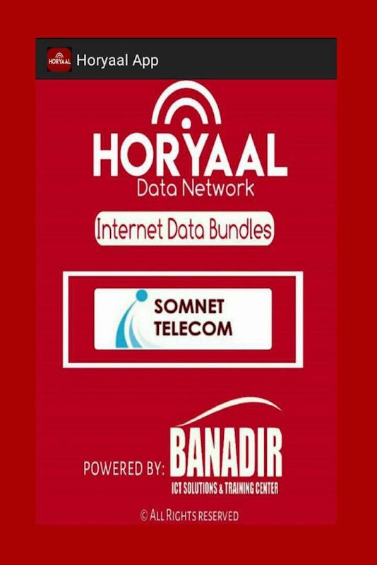 Horyaal Data Network waa idiin fududaynaya inaad, iibsataan xirmooyinka internetka SomNet oo rakhiis ah. Waxaad ka helaysaan app-kaan xiliyada qaar promotion aad u jaban