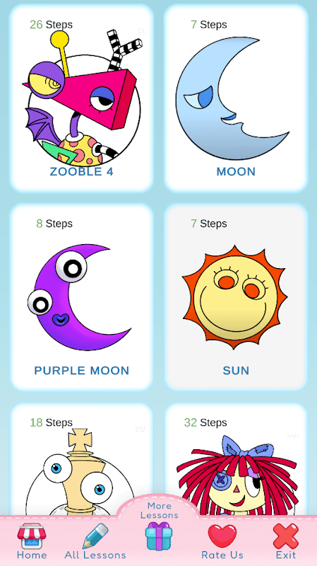 「驚くべきデジタル サーカスの描き方」アプリには、人気漫画の驚くべきデジタル サーカスのキャラクターを描く方法に関する詳細なレッスンが含まれています。 わかりやすい説明とわかりやすいイラストで、独自の魅力的なキャラクター イラストを作成するために必要なテクニックをすぐにマスターできます。