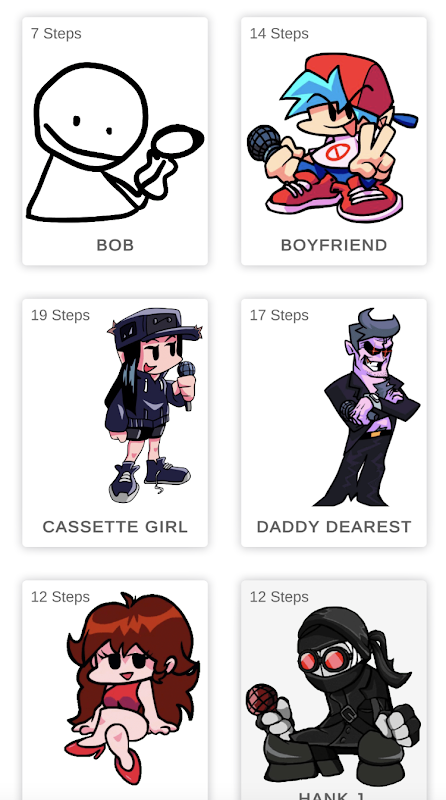フライデーナイトファンキンモッズ(FNF)のキャラクターを描く方法は、優れた描画チュートリアルです。たった一晩で、お気に入りのキャラクターを描くことができます。そして、あなたにとってそれをより簡単にするために-すべてのレッスンは難易度レベルに分けられます。絵を描くのが初めての場合は、「簡単」とマークされたレッスンを使用してください。