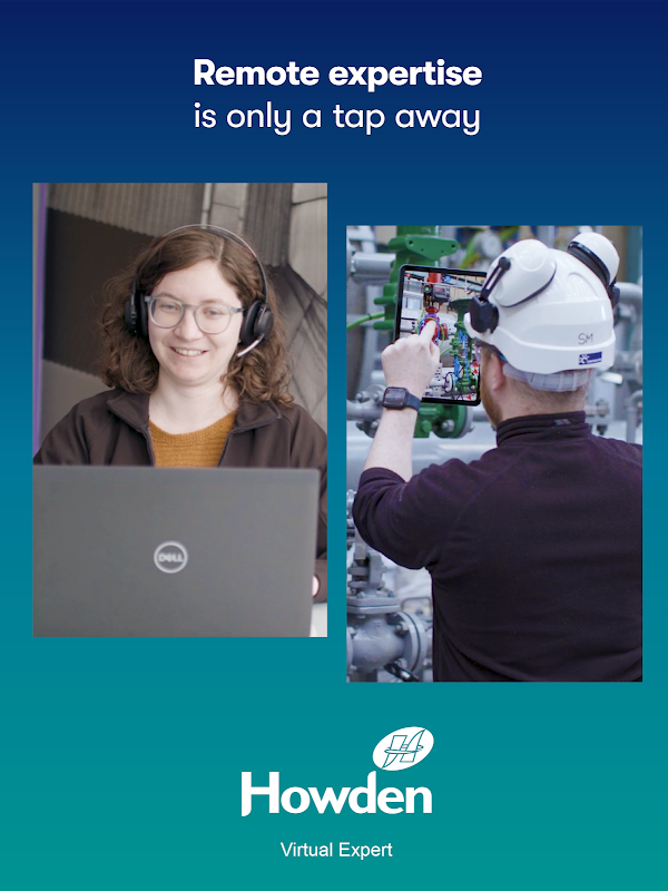Howden Virtual Expertは、強力なARコラボレーション機能とリアルタイムのビデオ通信を介して現場の技術者と専門家を結び付け、目前のシナリオを観察して話し合うことを可能にします。