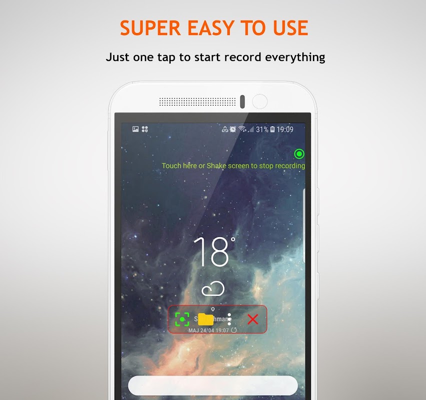 HQ Screen Recorder record your screen in HD and FullHD videos and it is the best screencast app in the Android market which can be paused and resumed during recording.