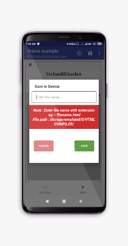 Save file directly in your phone storage in HTML-EDITOR/COMPILER App.