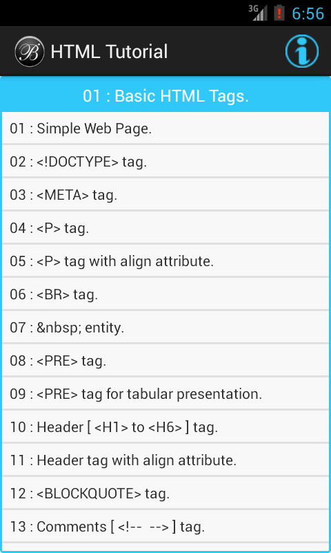 このHTMLチュートリアルアプリケーションは、簡単な例により、HTMLのマークアップ言語を学ぶのに役立ちます。このHTML