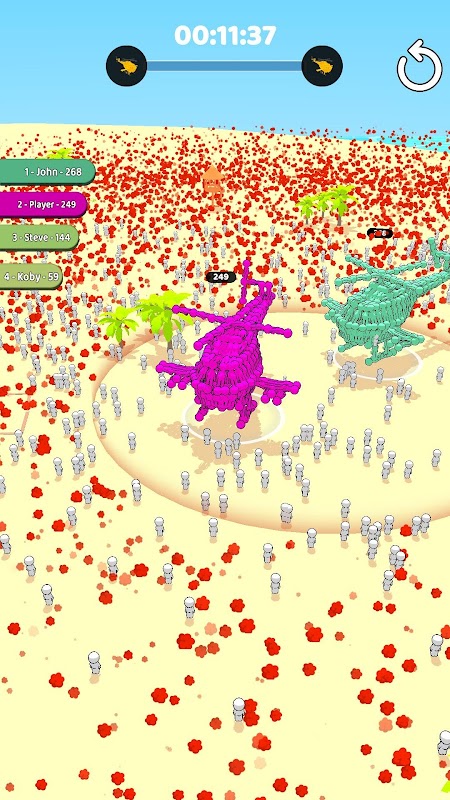 やって来るすべての小さな男を集めて自分自身を大きくしてください。そうして初めて、大きな巨大なモンスターを倒すことができます!
