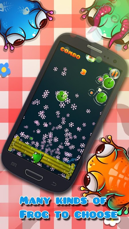 Just tap, tap & tap to the screen to drive the Frog to the direction that the Frog can eat the foods in the pond surface