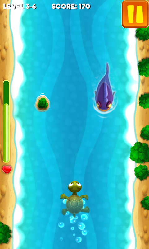 This is the classic arcade game. Swim as far as you can, avoid obstacles, catch bonuses and don't forget to eat, because this turtle is very hungry!