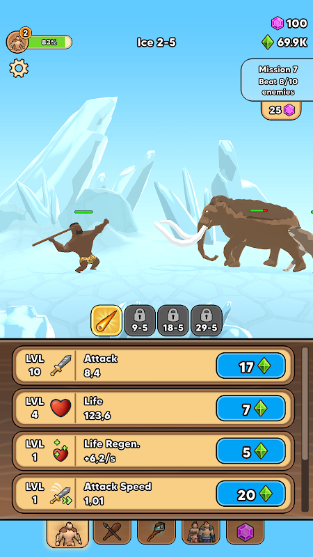 遭遇するすべての敵をなぎ倒し、お金を稼ぎながら、部族のチャンピオンを目指せ!
