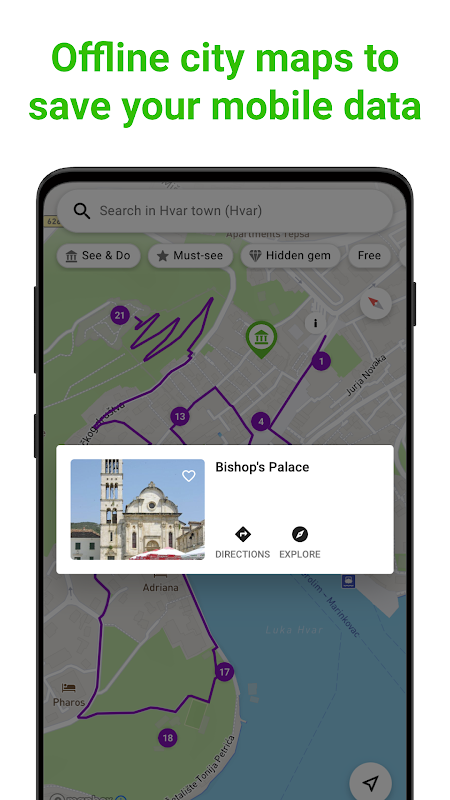 スマートガイドを使えば道に迷うこともなく、必見の観光スポットを見逃すこともありません。 SmartGuide は GPS ナビゲーションを使用して、自分のペースで都合よくフヴァル島を案内します。現代の旅行者のための観光。