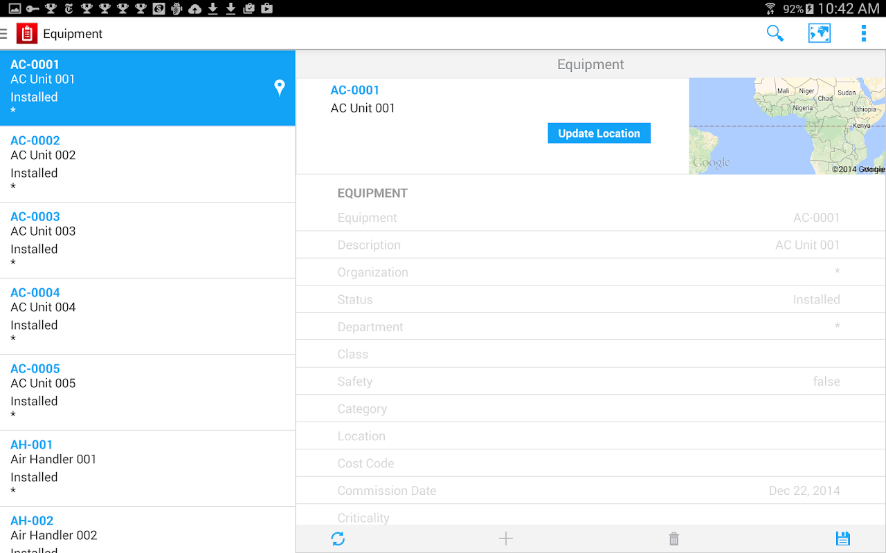 「HxGN EAM Mobile Connected」により、組織は作業管理、資材管理、検査、チェックリストなどの機能を Android タブレットのユーザー インターフェイスで実行できます。