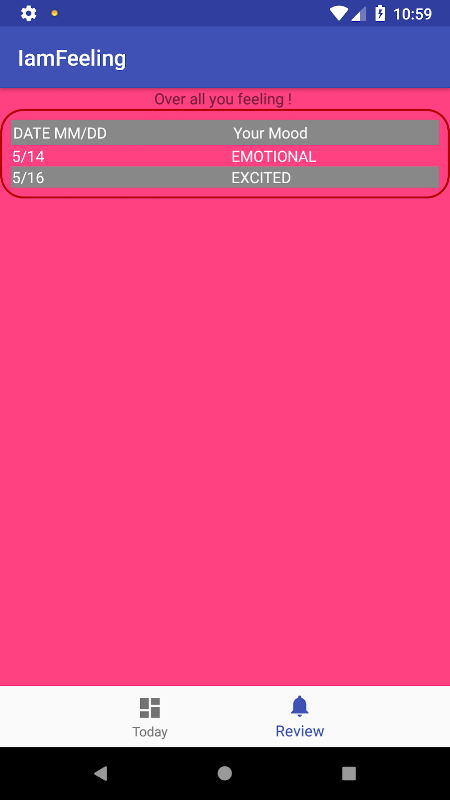 IamFeeling app is designed for everyone. The motive behind this app to make you ask "How you are feeling today?" from your self. As we all believe, reviewing yourself is required and play important role in our life. With this motive, IamFeeling is designed to work.