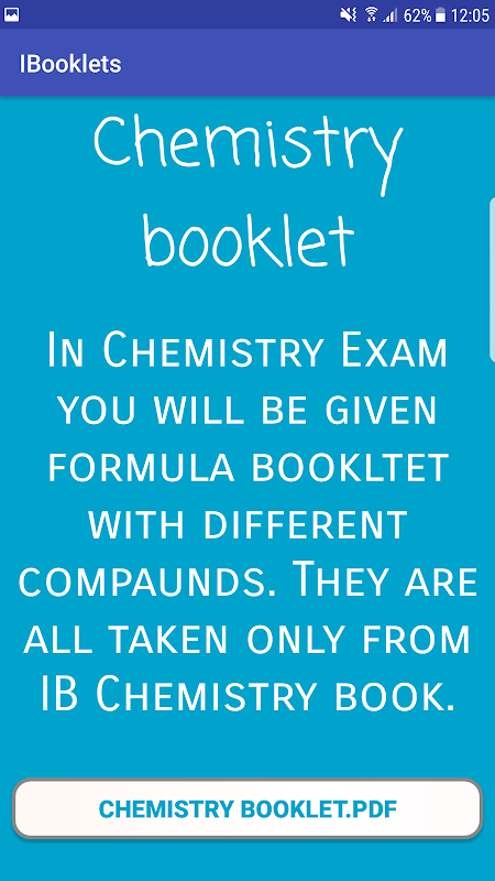 Hi. My name is Elnur, and my target is to make IB student's life easier. This application has all IB examination Data Booklets, for all possible subjects. It has Levels for math - Further math, High Level, Standart Level, Math studies. Also, this application contains Physics and Chemistry Data Booklets. You can contact through the app with us at any time.