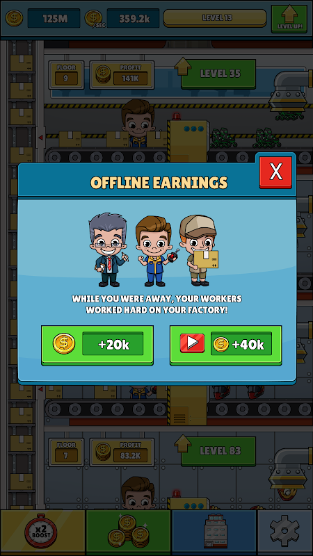 Sell items and become a Idle Box Tycoon and grow multiple Factories and sell watch, fidget spinners, tv, smartphones.