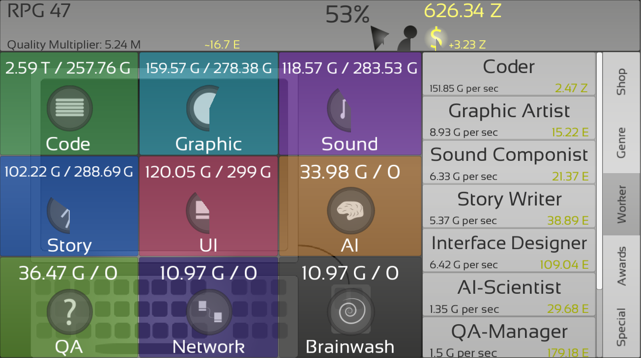In Idle GameDev, you are a game developer. You start with simple Text Adventures and get better and richer until you make Triple A Games.
