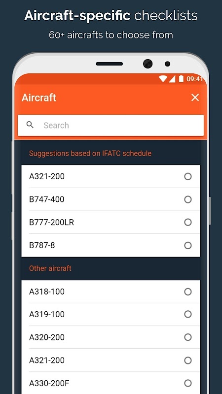 IFチェックリストは無限飛行のため9、航空機固有のチェックリストを提供しています。