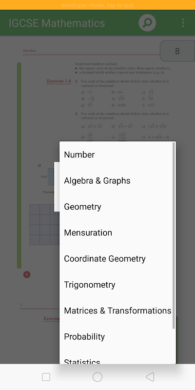 初歩的なブックマークシステムでは、このアプリはIGCSE数学教科書へのアクセスをユーザーに提供するのに役立ちます。