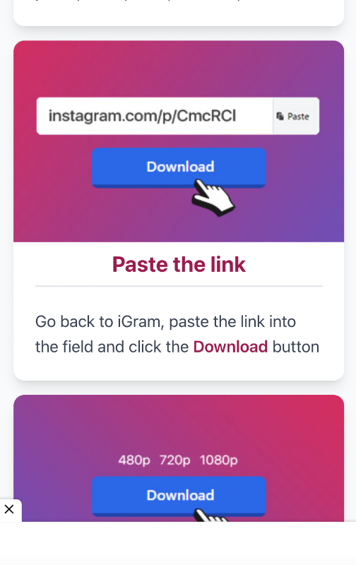 iGram は、任意の目的で IG ビデオをダウンロードできるように作成されています。 iGram は、単一のビデオとカルーセルからの複数のビデオのビデオ ダウンロードをサポートしています。