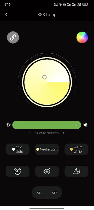 1) 基本機能: ランプの明るさ、色温度、色の調整