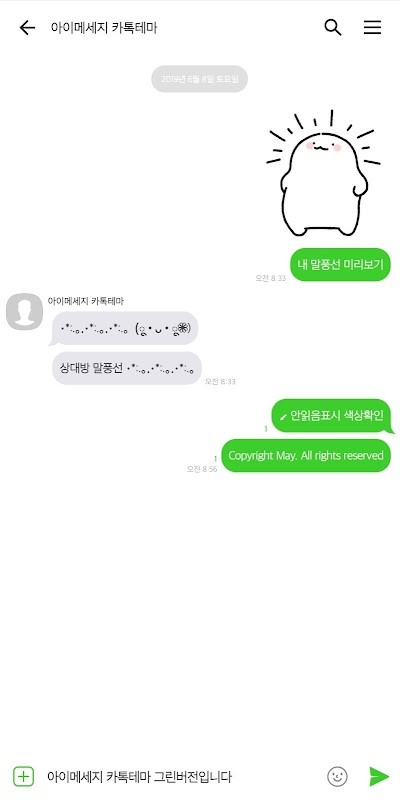 imessageグリーンカラーカカオトークのテーマです *カカオトーク8.0以上のバージョンでのみ適用可能