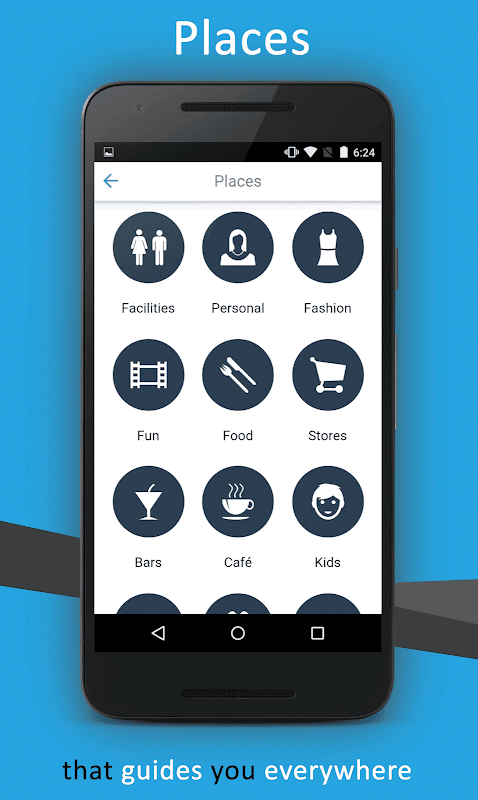 • Accurate and reliable indoor positioning technology** that will precisely point your location inside the building, just like GPS but, without GPS.