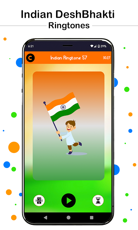 デバイスを愛国的な着信音に対応できるようにし、インドの DeshBhakti 着信音をダウンロードして、この無料のインドをテーマにしたパーソナライズ アプリでデバイスをさらにお祝いにしましょう。 DeshBhakti Festival と良い休暇をお過ごしください。共和国記念日 (1 月 26 日)、独立記念日 (8 月 15 日)、ガンジー ジャヤンティ (10 月 2 日) など、インドの人気の祝日の曲を聴いたり着信音を作成したりして楽しんでください。