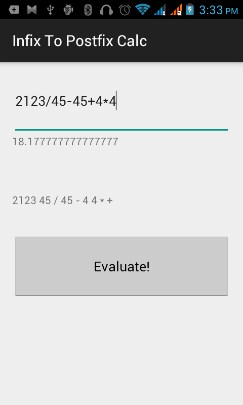 This app turns simple infix expression into postfix expression. It also shows the result of the calculated value.