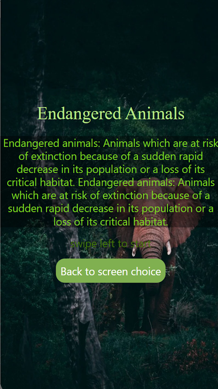This APP contains features of Guess who APP & Endangered Animal info APP.