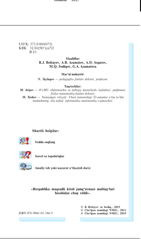 B 83 Informatika va hisoblash texnikasi asoslari。ウムミー・オルタ