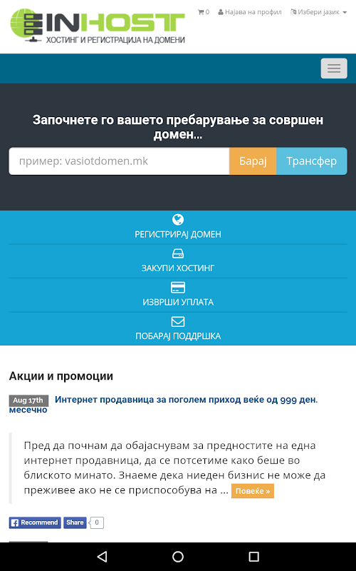InHost е сервис за брза и лесна регистрација на домен и закуп на хостинг.