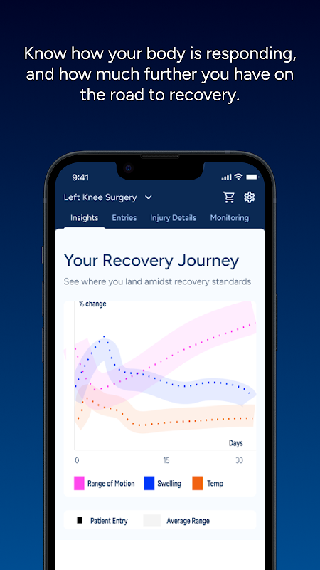これにより、あなたが理学療法クリニックから離れているときに、あなたの臨床医がどのように治癒しているのかを正確に把握することができます。腫れ、体温、可動域に関する医療グレードのデータを提供することで、あなたと臨床医は、回復の道のりがどこまで進んでいるのかを正確に確認し、体がどのように反応しているか、回復までの道のりがどの程度残っているかを知ることができます。