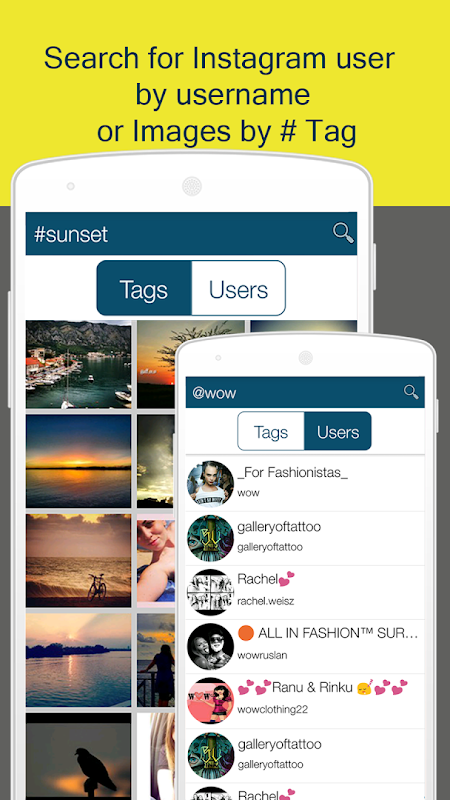 ~ Search for photo using HashTags # and For users By Their Instagram Username