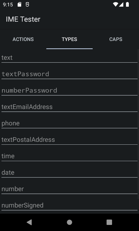 さまざまな入力フィールドを使用して仮想キーボードをテストする