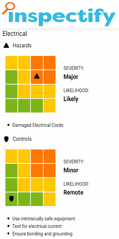 検査ツール:従来のチェックリストページ、infページ、意思決定ツリーベースのページ、ハザードおよびコントロール識別ページ、スマートリスクマトリックス評価ページ、およびドキュメント表示ページを組み合わせて、包括的で時間効率の高いプロセスを作成します。