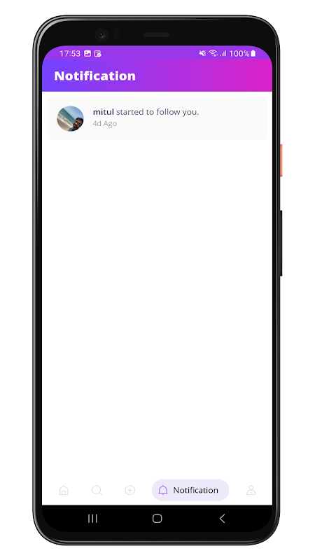 - Notification for the likes, comments, follow request