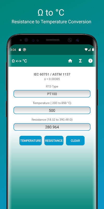 2.抵抗から温度への変換または温度から抵抗への変換