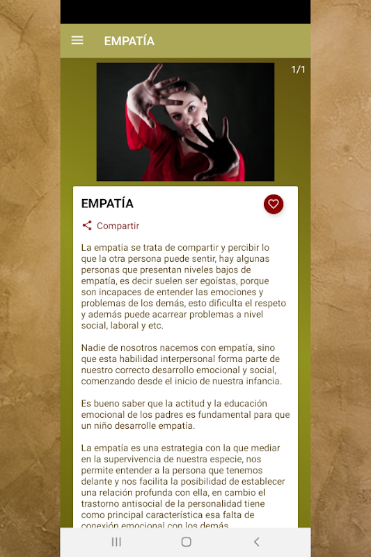 このアプリケーションでは、それぞれの感情的バランスを改善する方法について非常に重要なトピックを見つけるでしょう、私たちは感情的知性が開発するのは容易ではないが、大きな意志でそれを達成することを知っている。