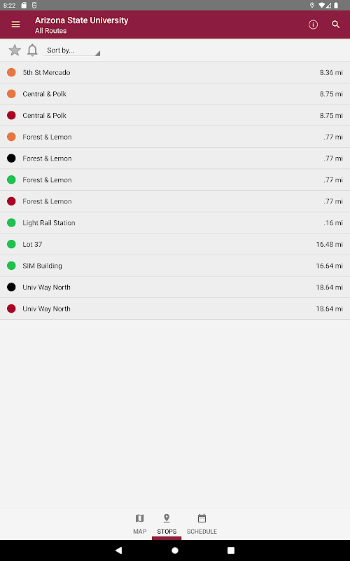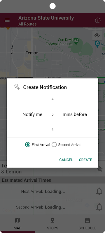 アリゾナ州立大学のキャンパス間トランジット シャトル サービスのリアルタイムのバス情報。