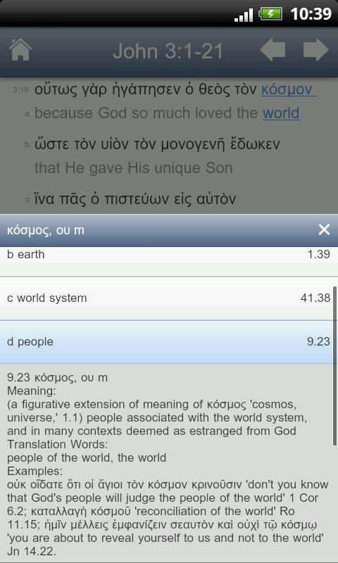 このユニークな行間ギリシア語新約聖書には、使いやすいです。それは、ギリシャ語のテキストおよびNOTアプリの形で出版された本にリンク新しい逐語英訳です。ただギリシャ語とそれが英語を与え、またはその逆をタッチします。ハイライトされたコンテキストで正しい1(S)で可能なすべてのギリシャの意味を見て、もう一度タッチします。すべての意味を参照します。あなたもギリシャ語を読んだり、発音できるようにする必要はありません。