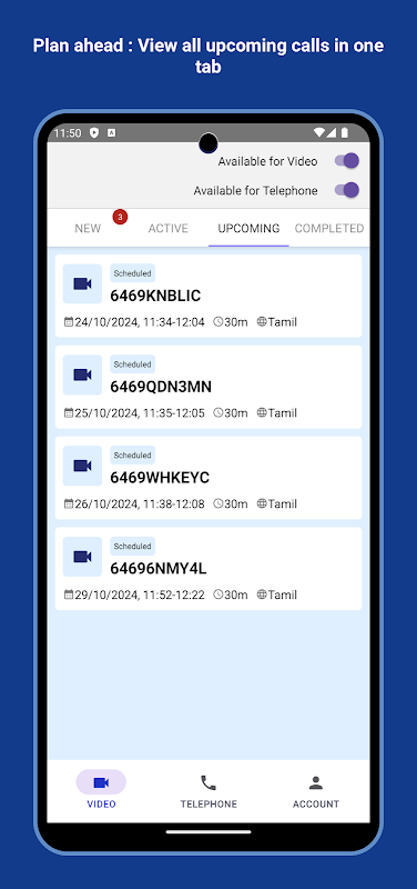 ボタンを押すだけのビデオ通訳と電話通訳で言葉の壁を軽減します。