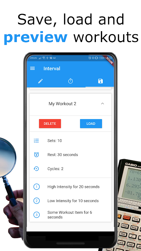 インターバルトレーニングルーチンの作成、時間設定、ログ記録