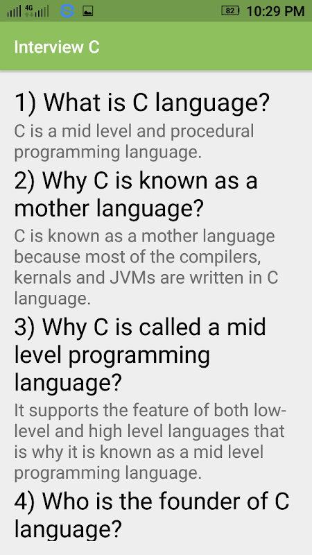 これは、これはあなたがより多くを学ぶことができ、これはあなたの面接の準備中にあなたを助けるかもしれプラットフォームですit.Hopeにご関心を高めるためにCで非常に多くの質問が含まれていC.It上のあなたの知識を向上させるために開発されたアプリです