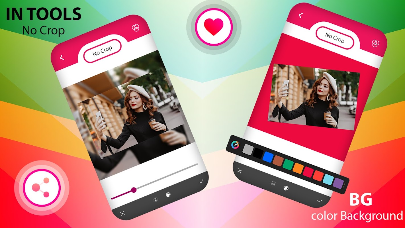No Crop Photo Square Layoutを使用すると、写真を正方形にしたり、背景をぼかしたり、写真を回転させたり、背景に黒の背景、白の背景などのカスタムカラーを追加したり、写真の品質を向上させてサイズを変更したりできます。また、ストーリーで行うのと同じように、好きな場所や好きな方法で写真を配置することもできます。