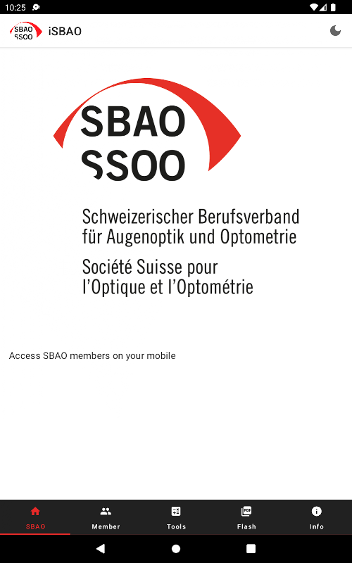 眼科光学および検眼のためのSBAOスイス専門家協会のモバイルアプリ