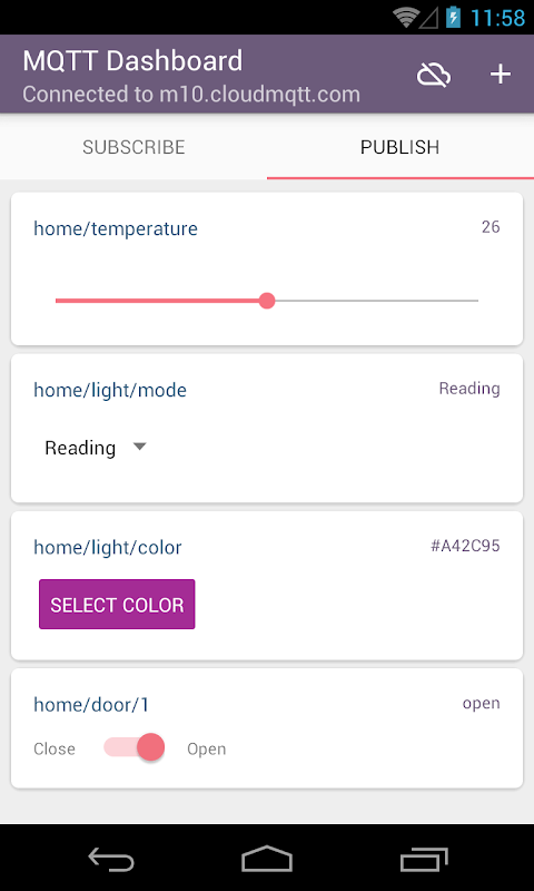 - Home screen Widgets are used to publish only! They do NOT subscribe to the topic and reflect their status.