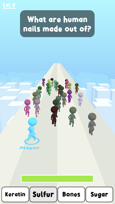 Run on a course with other competitors to remain the last one standing. Answer trivia questions by choosing the correct lane. Try not to fall!
