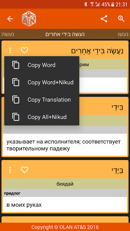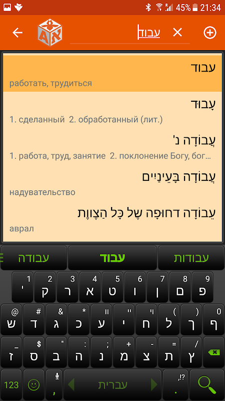 IRIS Mobile - 転写付きヘブライ語-ロシア語-ヘブライ語辞書。