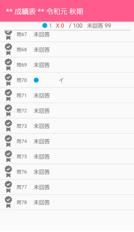 - 気になる問題、間違った問題にチェックをつけておけます。